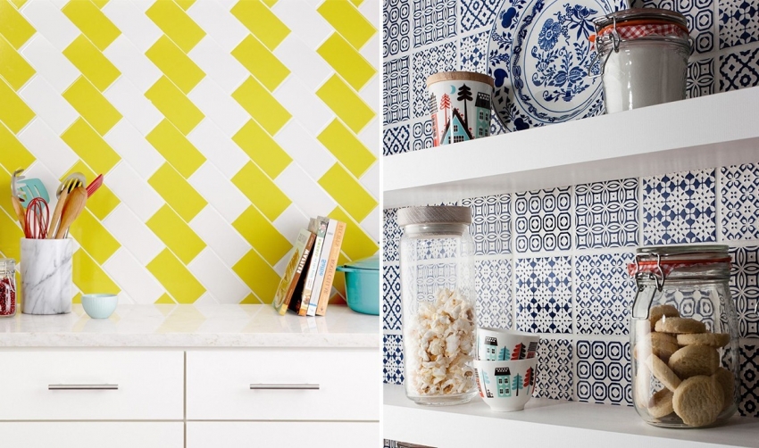 Jubin apron dapur. Jubin foto pelbagai jenis dan gaya