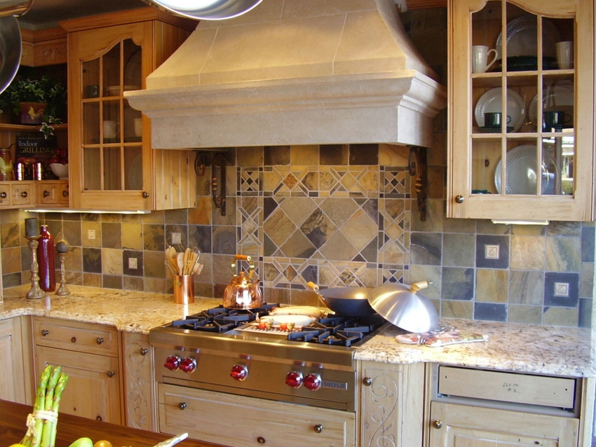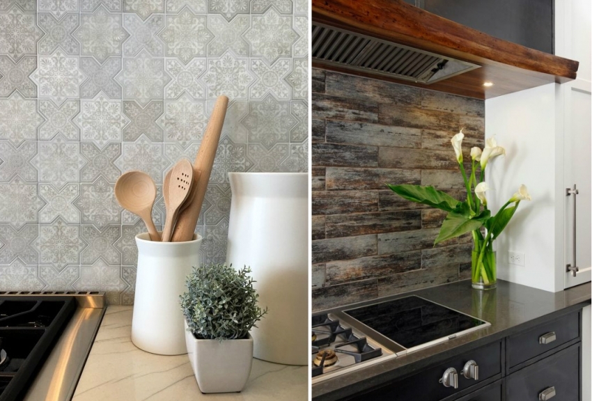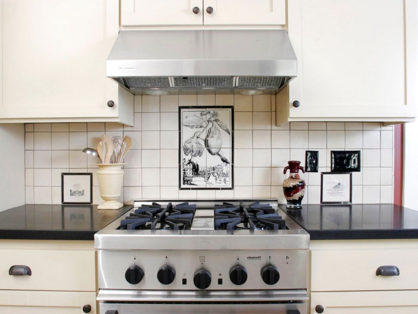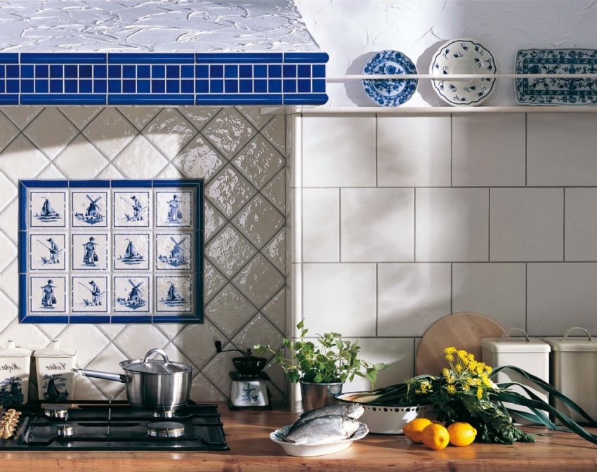 Panel hiasan yang diperbuat daripada jubin seramik sering digunakan untuk hiasan dapur gaya negara