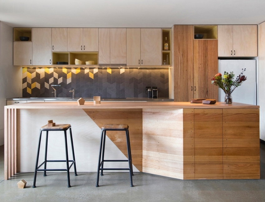 Cara mempelbagaikan apron jubin biasa di dapur: contoh foto