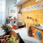 Panel hiasan jubin Juga merupakan cara yang cukup biasa untuk menghias permukaan. Penyelesaian ini kelihatan sangat baik jika reka bentuk dapur mengikut gaya Provence, country atau klasik.
