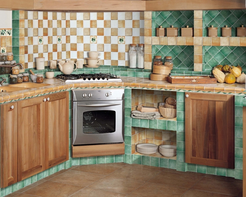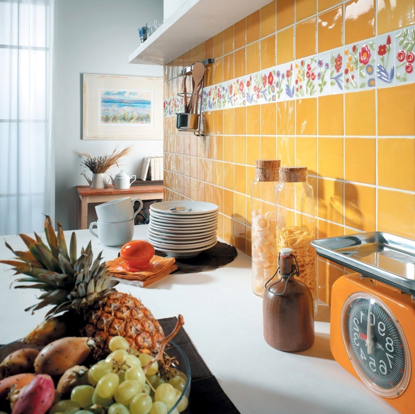Dengan bantuan jubin seramik, anda boleh menghiasi bahagian dalam dapur dengan cara yang asli dan bergaya.