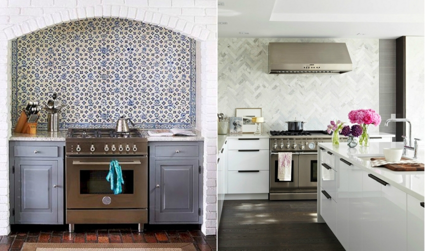 Apron dapur ubin: reka bentuk foto dalam pelbagai gaya