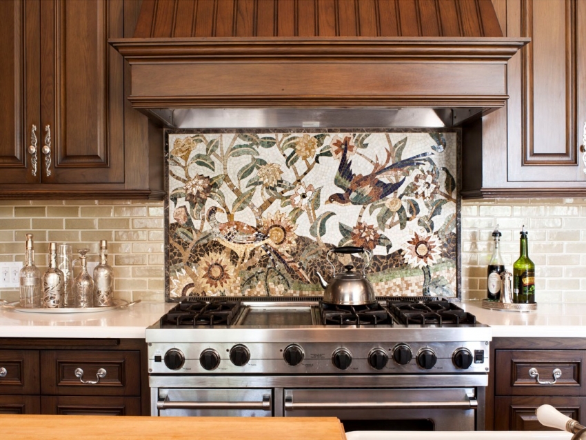 Mosaik buatan tangan adalah karya yang mahal dan susah payah yang boleh membawa kemewahan dan eksklusif ke bahagian dalam dapur klasik