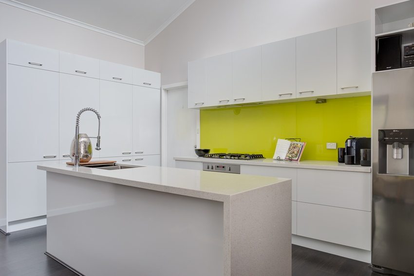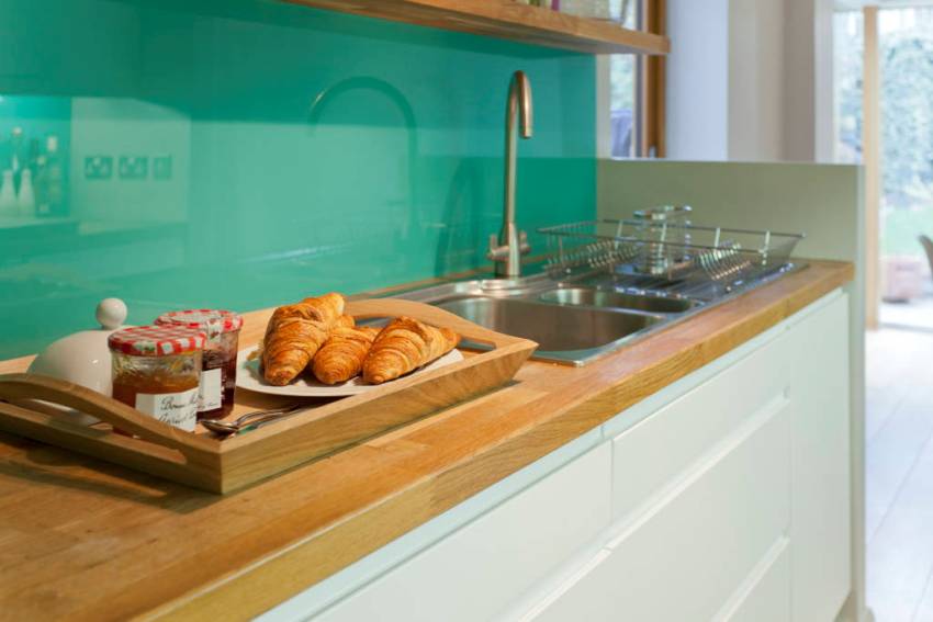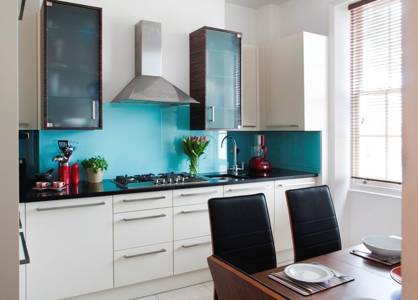 Kelebihan menggunakan backsplash kaca di dapur jelas: