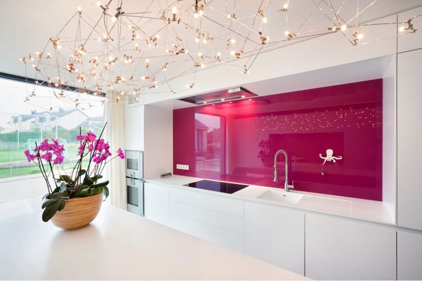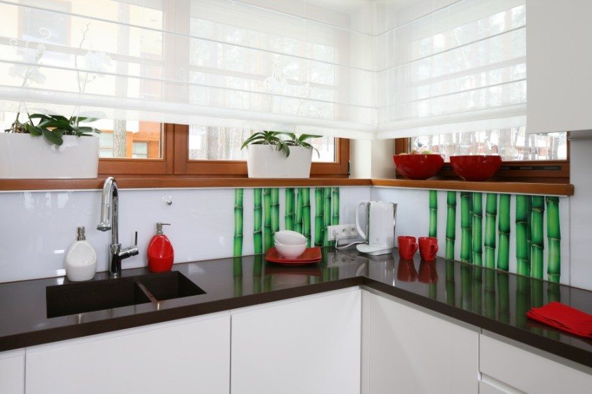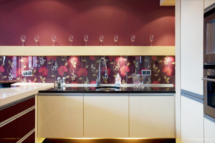 Pilihan untuk memasang apron untuk dapur yang terbuat dari kaca: foto tiga cara