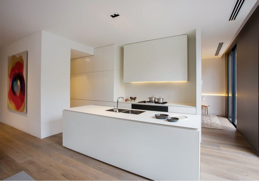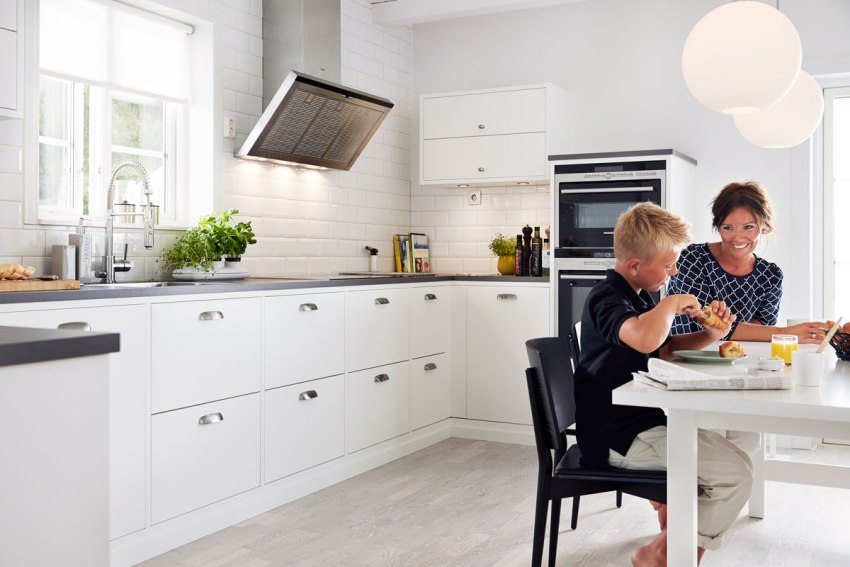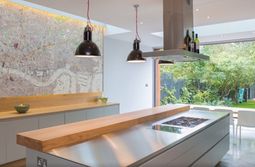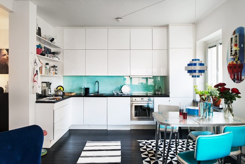 - permukaan kaca satu bahagian di dapur secara visual meningkatkan ruang, menjadikan bilik lebih luas dan segar;