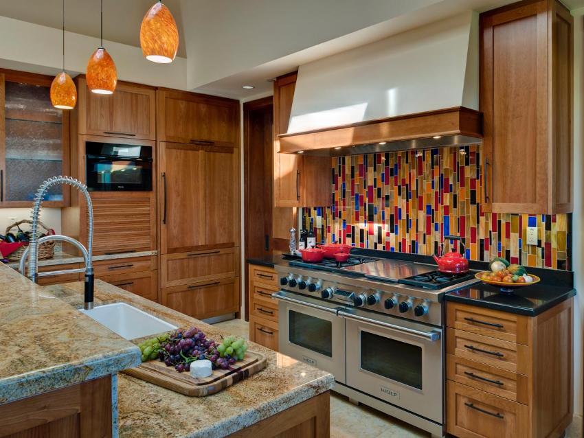 Varieti apron kaca untuk dapur: katalog foto