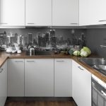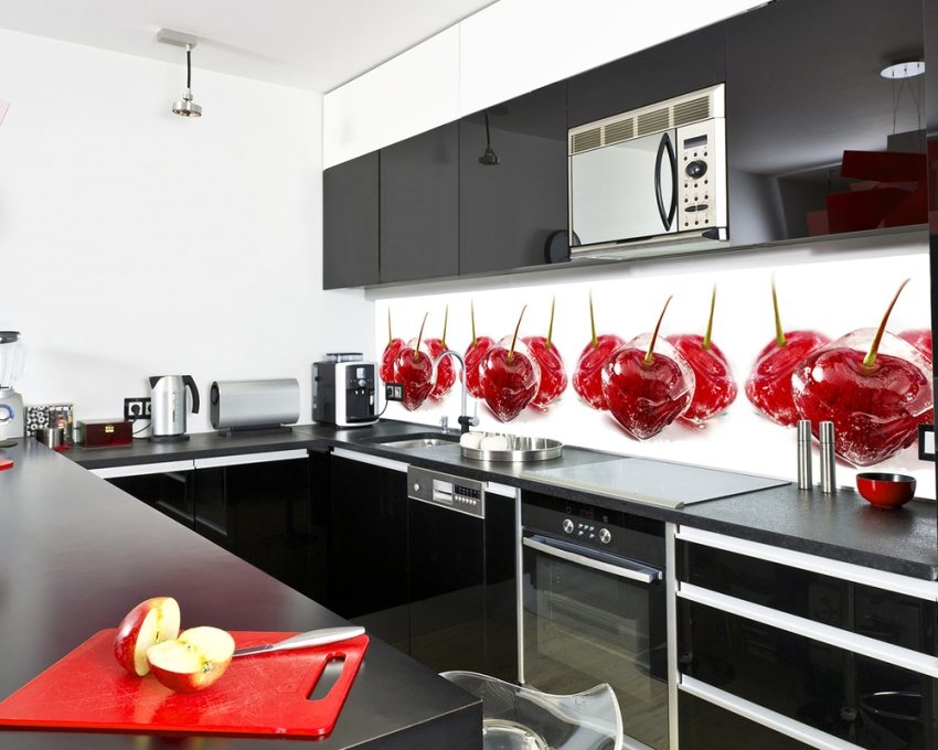Celemek untuk dapur, berkulit: foto pilihan reka bentuk panel kaca
