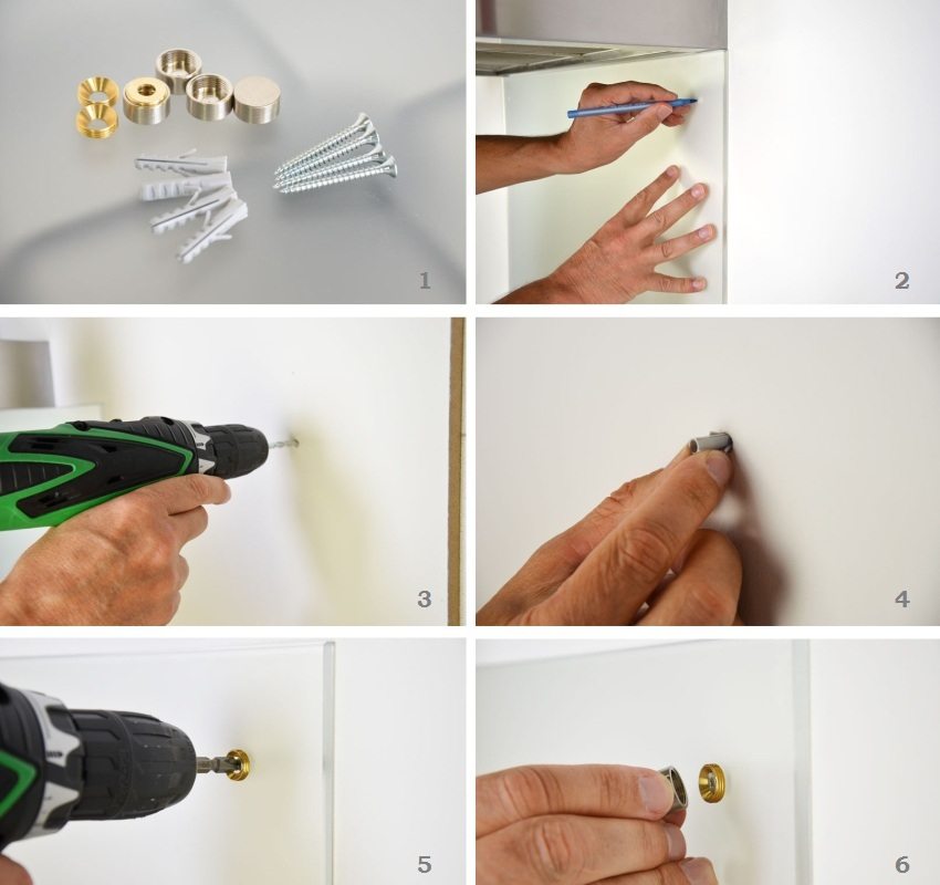 Kaedah 1... Pengancing dengan skru. Ini adalah cara termudah dan paling mudah untuk memasang apron, yang dapat digunakan pada permukaan apa pun, bahkan yang paling tidak rata. Lebih-lebih lagi, panel boleh dilepaskan dan diikat lebih dari sekali. Dalam kes ini, jurang kira-kira 4 mm kekal di antara permukaan dinding dan apron. Untuk membuat penampilan yang lebih estetik, palam khas dipasang pada skru.