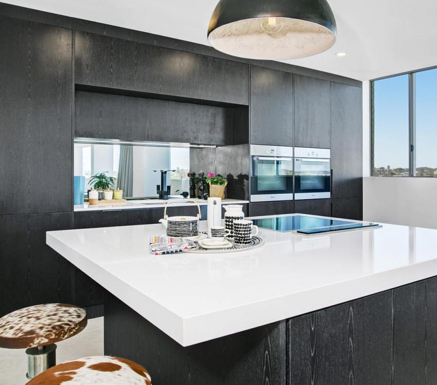 Apron diperbuat daripada MDF digabungkan dengan panel kaca