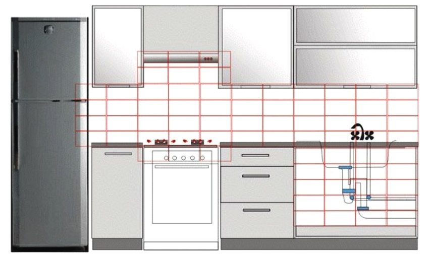 - jika anda bercadang untuk meletakkan pelat belakang jubin di atas dapur, anda perlu meletakkan tambahan 60-80 cm ke atas. Lebih baik tinggalkan elaun selebar 10-15 cm;