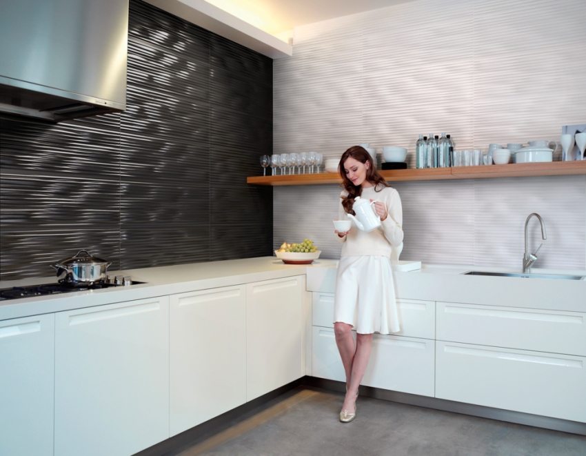 - 6 Apron untuk dapur dari jubin seramik: foto dan petua untuk memilih bahan