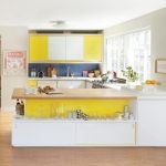 Pilihan pertama menetapkan bahawa ketinggian backsplash dapur sama dengan jarak dari pinggir bawah kabinet gantung ke lantai itu sendiri. Tentu saja reka bentuknya ternyata lebih tahan lama, tetapi harganya secara automatik menjadi jauh lebih tinggi kerana penggunaan bahan tambahan.Jarak antara barisan kabinet bawah dan atas rata-rata adalah 50-65 cm, dengan nilai ini adalah perlu untuk menambah ketinggian alas bawah. Lebar apron akan sama dengan panjang dinding kerja dari sudut ke sudut.
