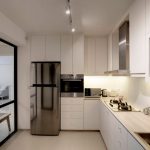 - Perabot tinggi dan peralatan rumah tangga tidak boleh diletakkan di kawasan segitiga kerja, agar tidak mengurangi ruang kosong yang diperlukan untuk pergerakan yang selesa.