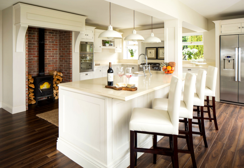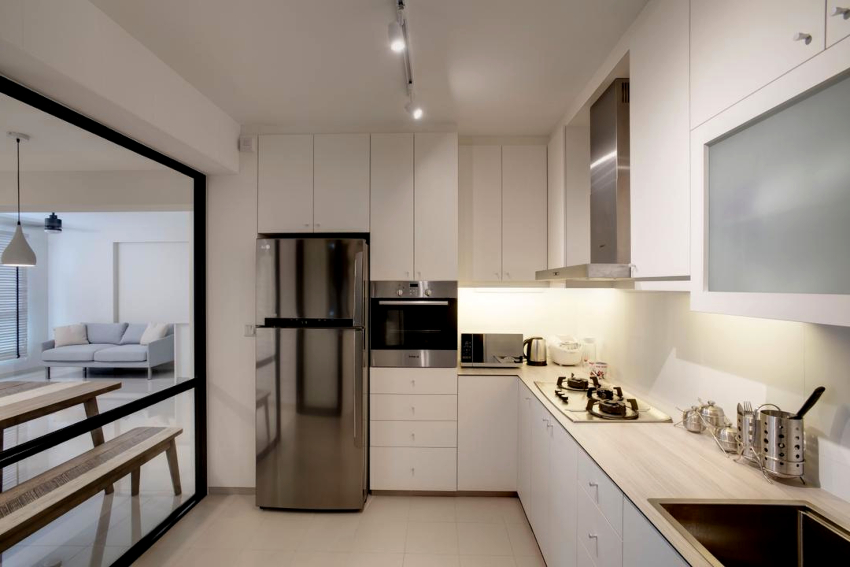 Warna putih alat dengar mudah diselaraskan dengan kebanyakan warna dan sesuai untuk menghiasi bahagian dalam dapur