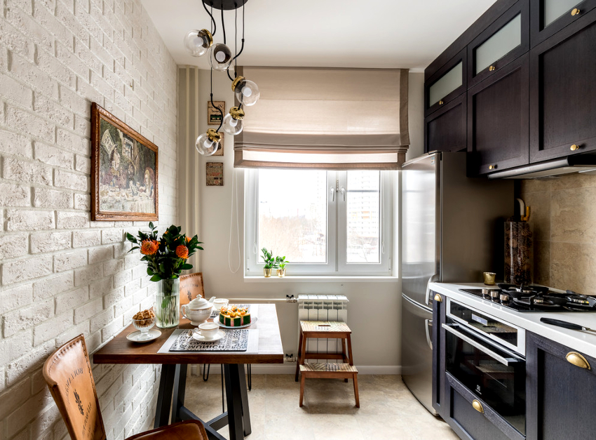 Reka bentuk dapur kecil 6 sq.m: gambar dalaman yang paling indah