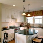Pilihan terbaik adalah memasang pulau bergerak di roda, yang diperbaiki jika perlu.Dalam kes ini, jadual secara serentak dapat memainkan peranan beberapa objek berfungsi, termasuk bertindak sebagai elemen pengezonan ruang. Secara semula jadi, susun atur seperti itu tidak mungkin dilakukan di dapur kecil.