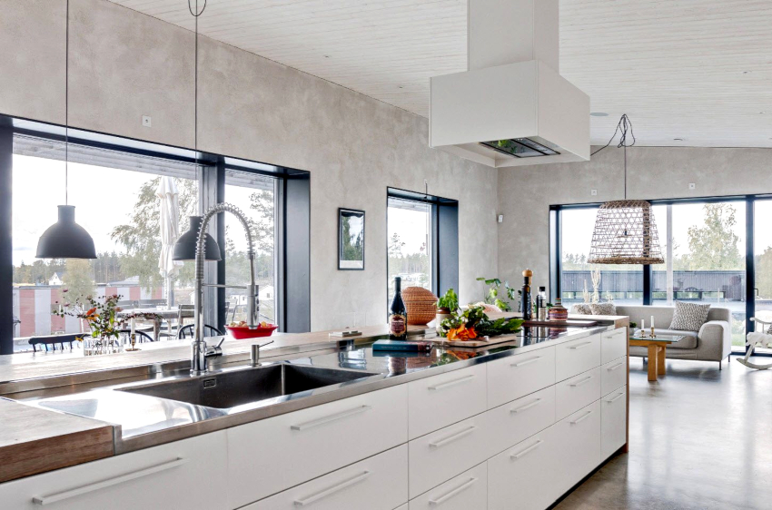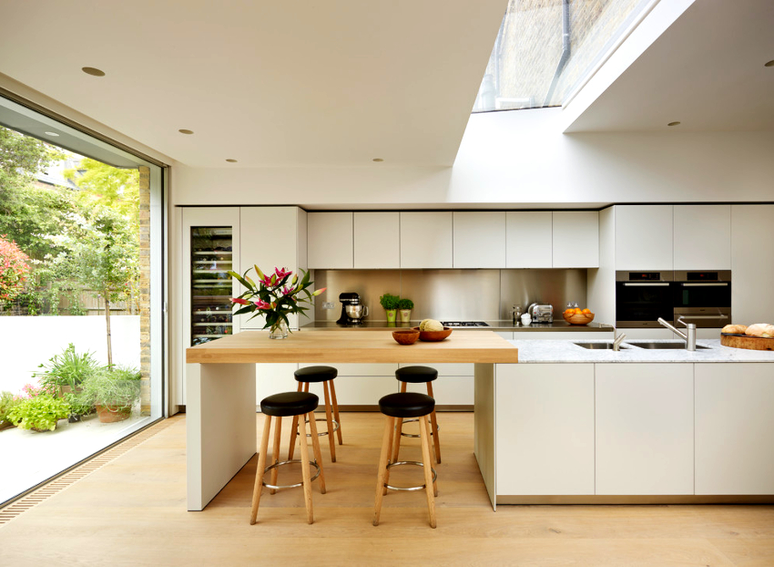 Perkara penting ialah semua bahagian dalaman dapur moden harus menggabungkan teknologi dan keselesaan yang tinggi. Dengan pendekatan yang tepat, teknologi terkini sesuai dengan perabot kayu yang dibuat dalam gaya klasik dan bunga segar di bahagian dalam dapur. Walaupun bahagian dalaman yang sangat moden dibuat menggunakan fasad berlapis krom, tetap disarankan untuk menambahkan sentuhan keselesaan, baik itu pinggan mangkuk, hiasan atau tekstil yang tidak biasa.