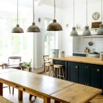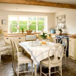 Kecenderungan orang Scandinavia di bahagian dalam dapur melibatkan penggunaan warna cahaya dan bahan semula jadi seperti kaca, kayu, logam dan batu. Ciri khas dalaman Scandinavia adalah balok siling yang menonjol, dicat dengan warna gelap. Perabot untuk bahagian dalaman seperti itu biasanya digunakan sederhana dan tanpa perincian yang tidak perlu. Dalam foto idea untuk ruang dalaman dapur 13 sq. meter, yang terkenal dengan kelapangannya, meja makan kayu besar digunakan sebagai elemen aksen.