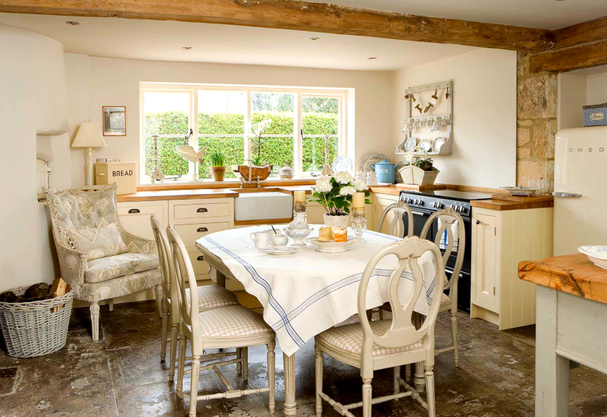 Bahagian dalaman gaya negara telah lama berhenti berhubungan dengan kawasan pedalaman semata-mata dan banyak digunakan di pangsapuri moden, yang sebahagiannya bergaya sebagai rumah luar bandar yang selesa. Arahnya menyiratkan penggunaan bahan ekologi, di antaranya kayu dan batu adalah umum, walaupun mereka semakin digantikan oleh tekstur yang mengulang strukturnya. Pedalaman desa lebih sesuai untuk dapur yang luas.