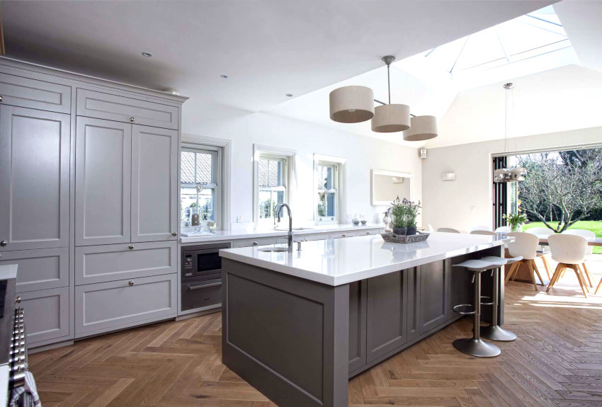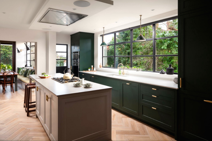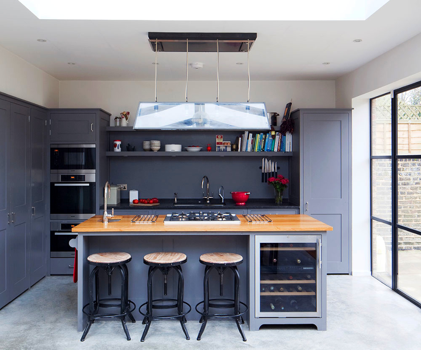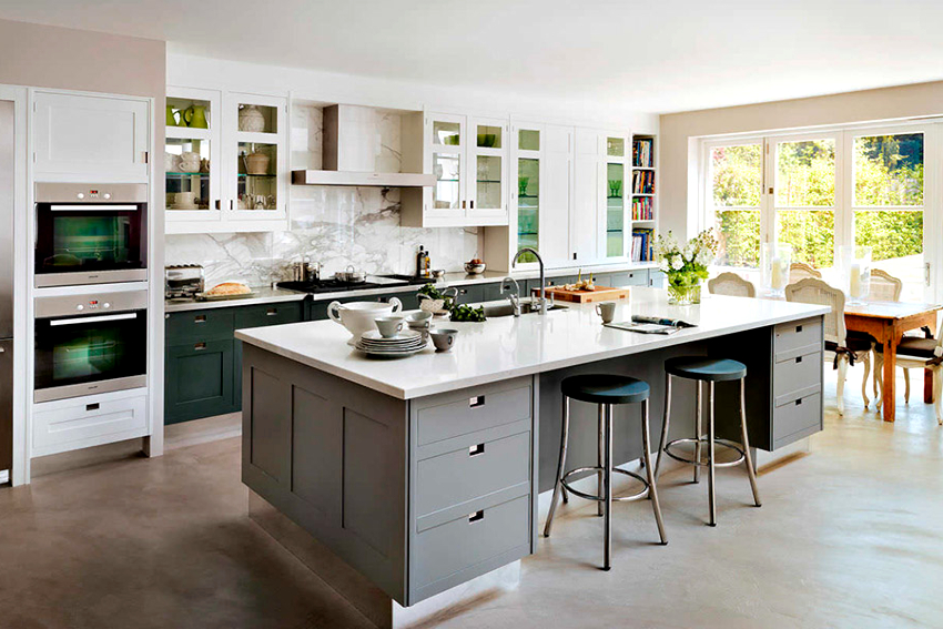 Reka bentuk dapur dari kawasan sederhana dan besar: susun atur dua baris, berbentuk U dan pulau
