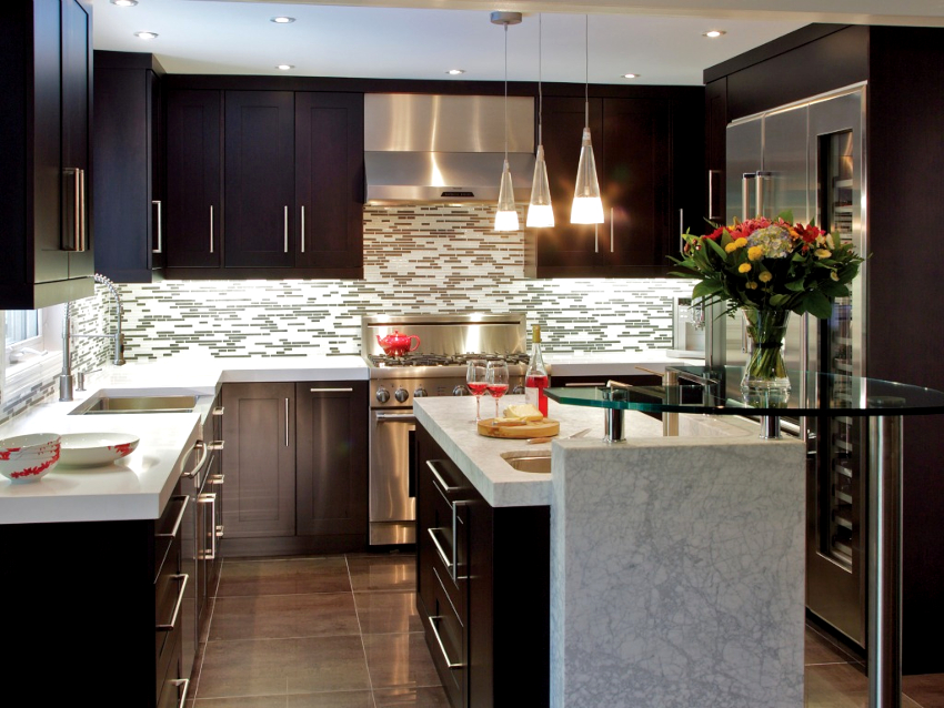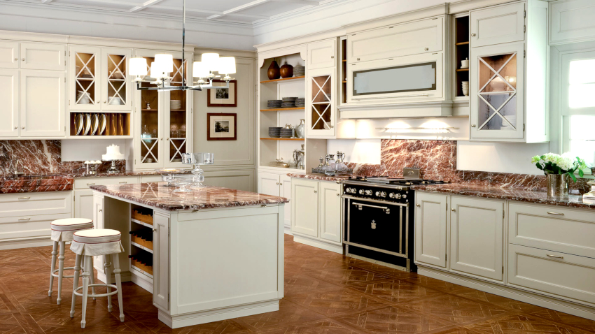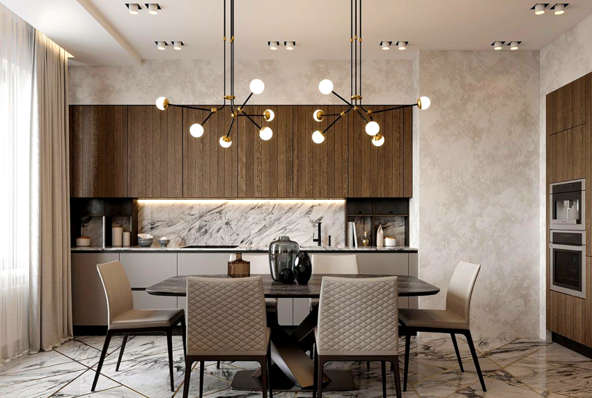 Pereka menggunakan sebilangan besar jenis dalaman untuk hiasan dapur, yang paling popular adalah yang berikut: