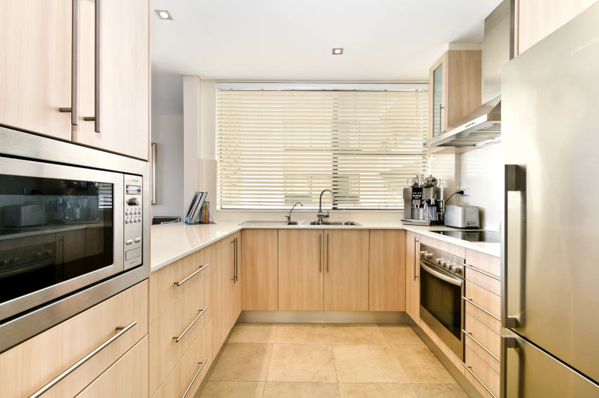 Sekiranya anda melihat gambar bahagian dalaman dapur moden, anda dapat melihat bahawa yang paling popular adalah susun atur berbentuk L atau L. Pilihan ini dianggap universal: ia boleh disesuaikan agar sesuai dengan bahagian dalam bilik apa pun. Selalunya, dapur seperti itu dipasang di bilik yang luasnya 8-10 meter persegi.