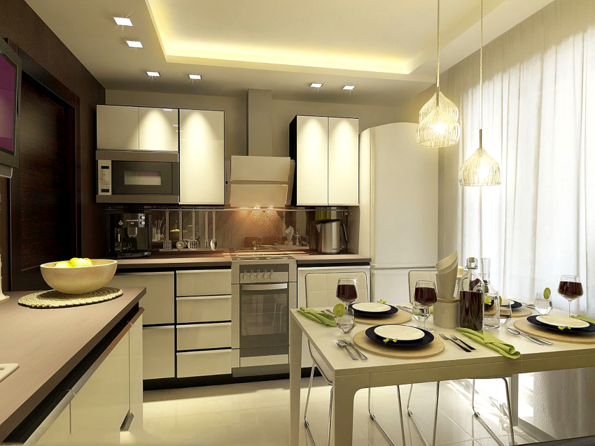 Ciri susun atur bahagian dalam dapur: foto contoh yang berjaya
