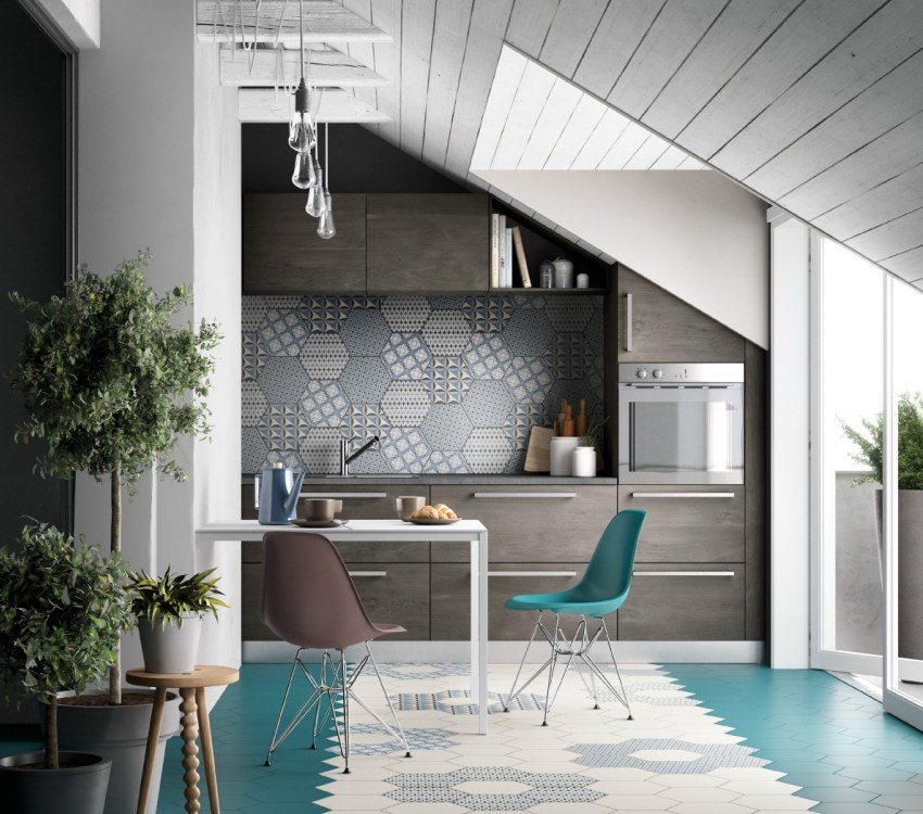 Siling regangan di dapur: gambar reka bentuk yang lancar