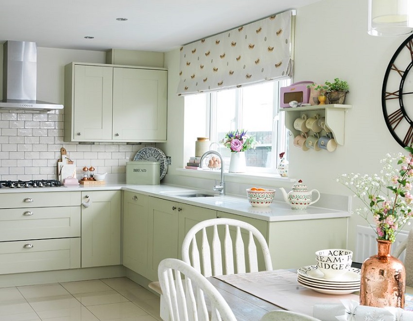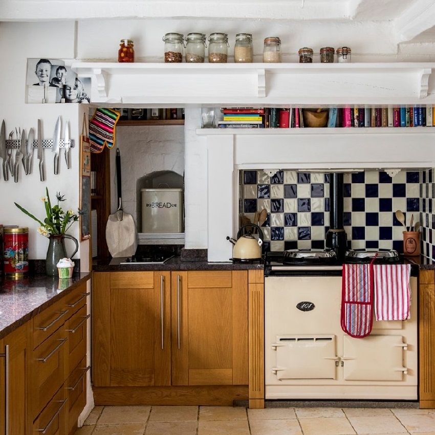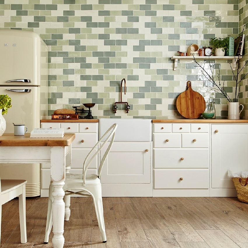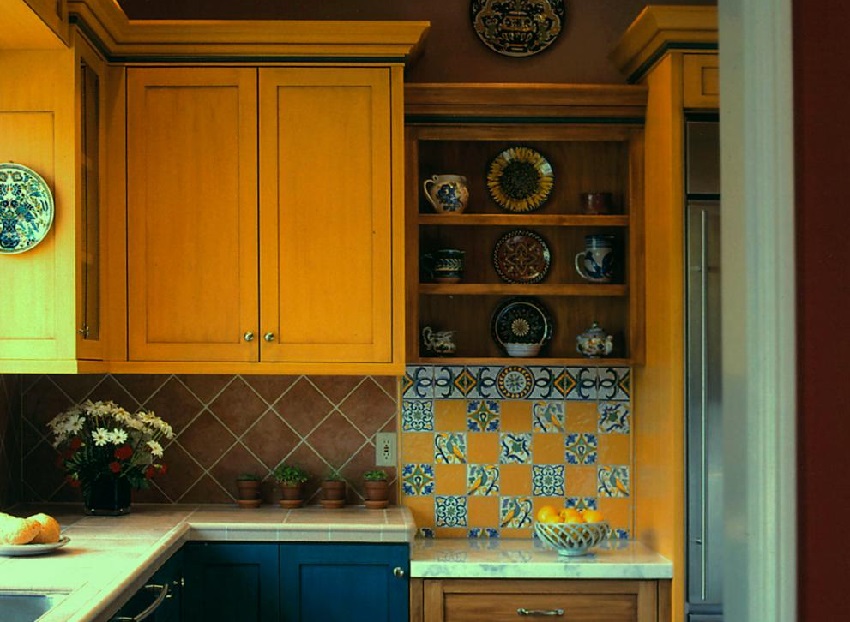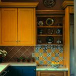 Cerah apron jubin dalam reka bentuk dapur gaya negara
