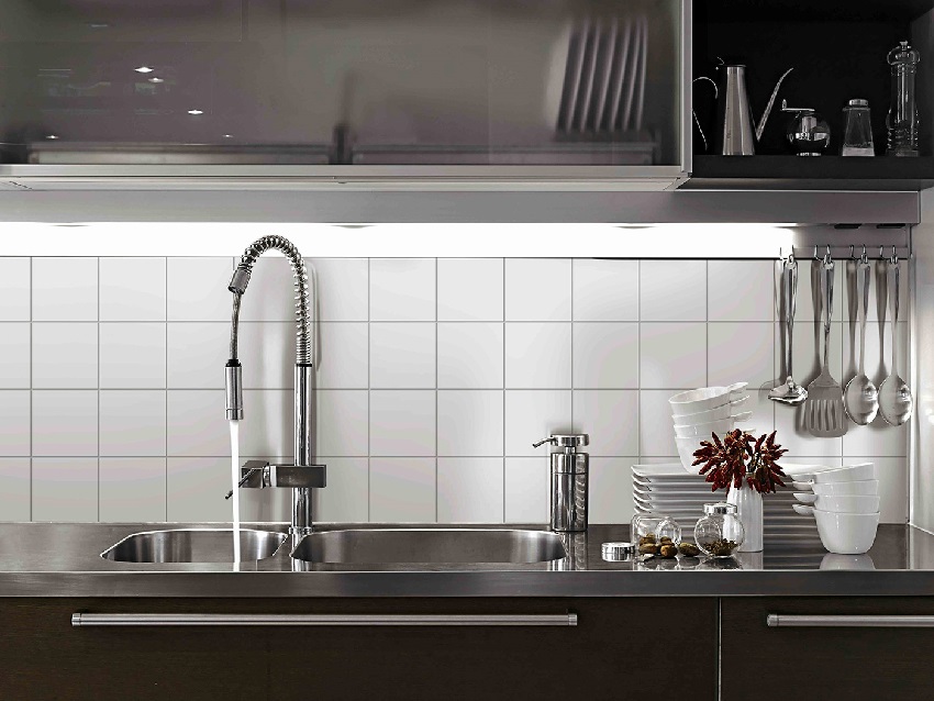 - jubin untuk dinding dapur tidak boleh timbul. Memandangkan kenyataan bahawa semua permukaan dapur terdedah kepada pencemaran, akan lebih mudah membersihkan jubin halus dengan teliti. Oleh itu, lebih baik segera menolak dari bahan penamat timbul yang indah;