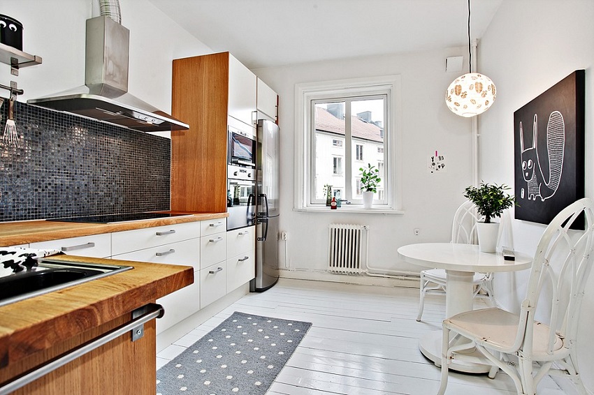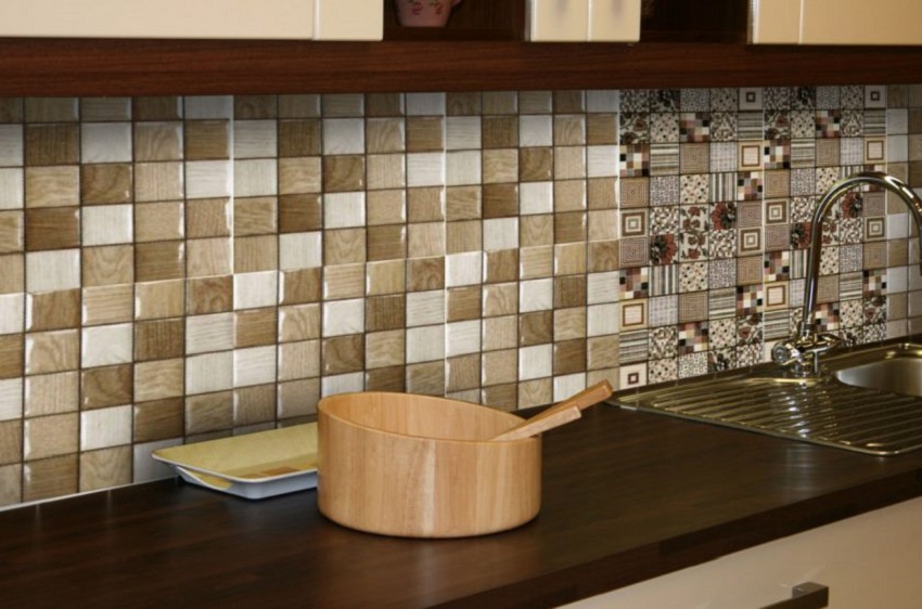 Agar pelapisan jubin tidak kelihatan membosankan dan monoton, anda boleh menggabungkan bahan, mewujudkan kombinasi yang paling tidak biasa. Berikut adalah beberapa idea menarik untuk membuat backsplash menjadi hiasan utama dapur anda: