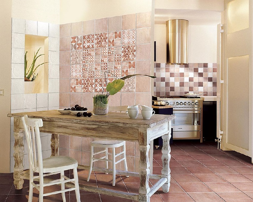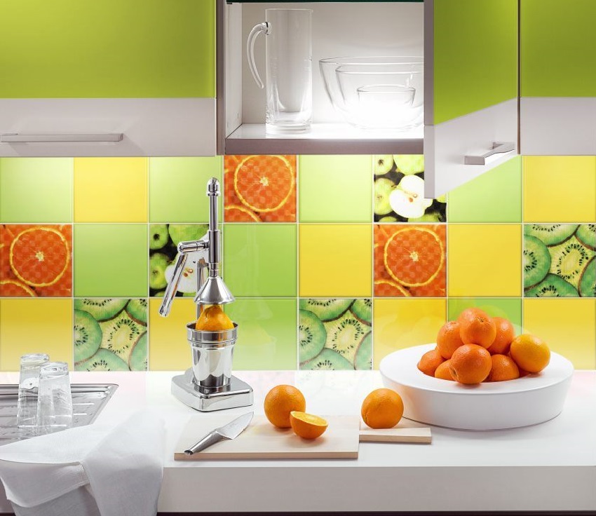 - menggunakan panel hiasan adalah cara lain untuk menghiasi permukaan. Kaedah ini sering digunakan untuk kawasan pedalaman Provence atau negara. Ukuran sisipan boleh hampir sama ada, tetapi adalah wajar untuk mengaturnya secara simetri untuk menunjukkan pusatnya. Subjek yang paling biasa untuk panel tersebut adalah pemandangan bandar-bandar kecil yang indah dengan rumah atau makanan yang comel (keju, buah-buahan, beri, dll.). Sebagai contoh, anda boleh mempertimbangkan banyak gambar jubin seramik untuk dapur dengan gambar tersebut.