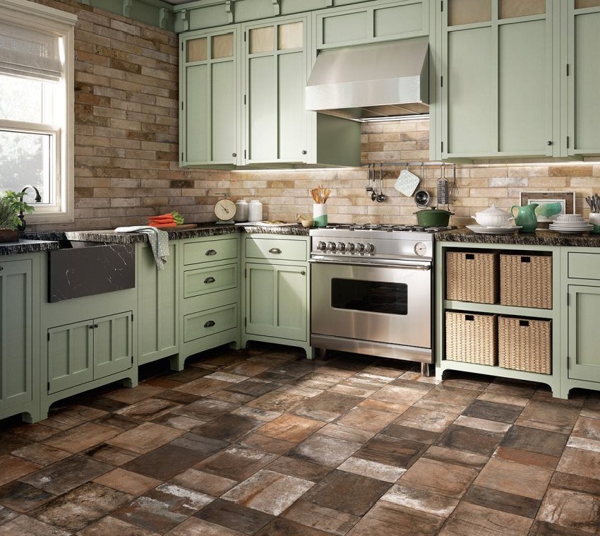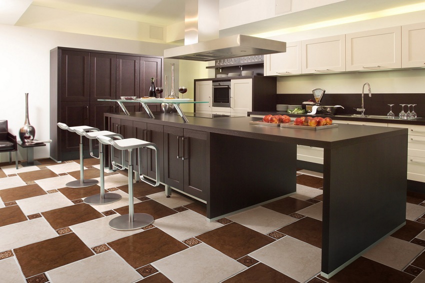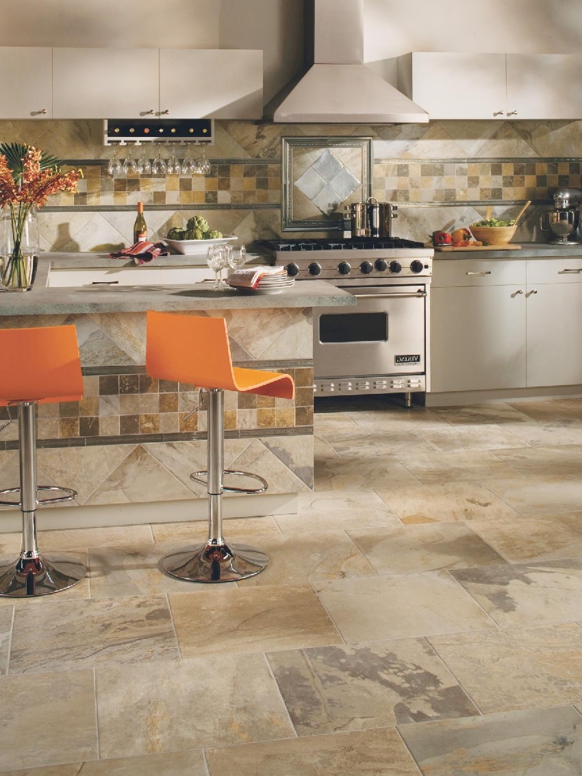 Cara memilih jubin untuk dapur di lantai: foto penyelesaian dalaman terbaik