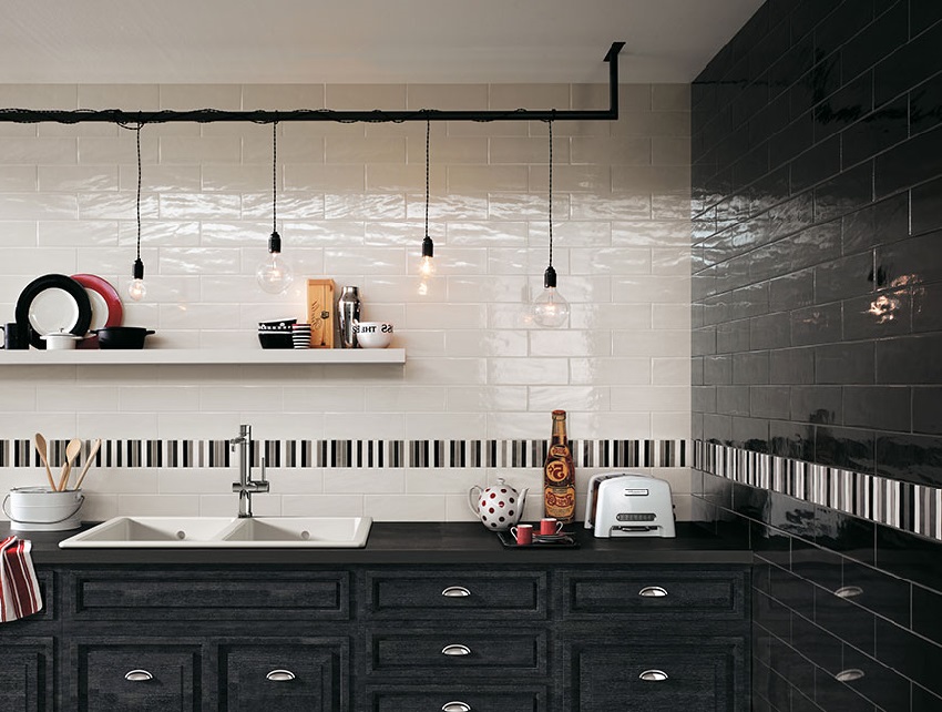 Penggunaan yang paling biasa untuk jubin dinding dapur adalah untuk membuat backsplash yang terletak tepat di atas permukaan kerja. Memilih jubin untuk tujuan ini berdasarkan peraturan berikut: