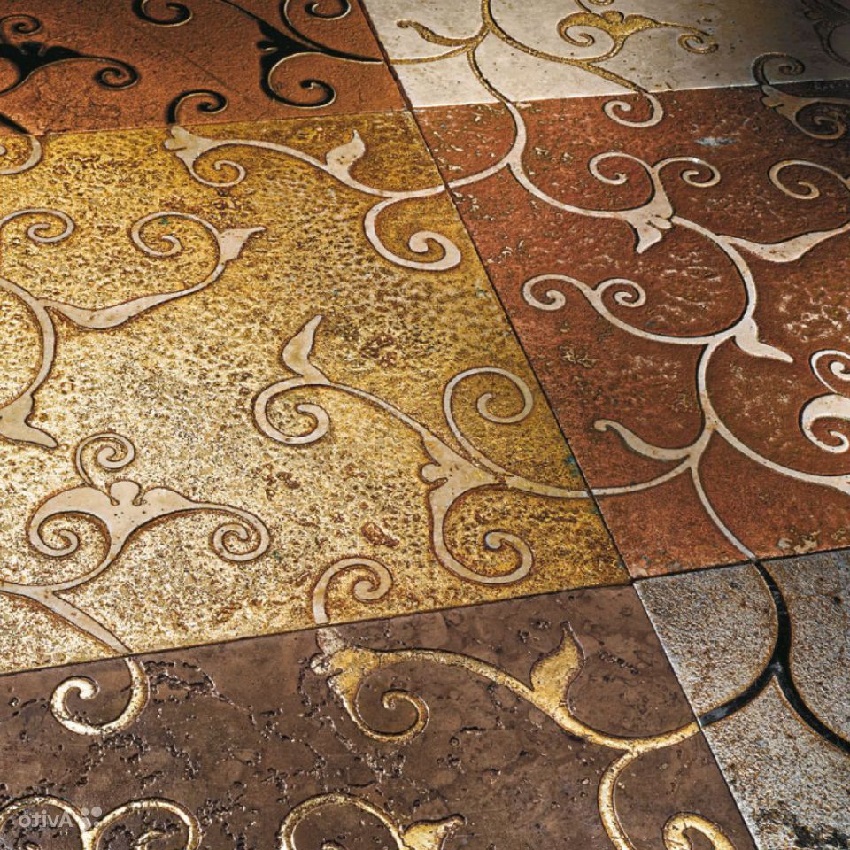 - jubin frieze atau border adalah elemen lain yang digunakan untuk hiasan. Merupakan elemen segi empat kecil yang dibentangkan dengan sempadan di bahagian atas atau bawah apron. Walaupun kadangkala jalur seperti itu diletakkan di tengah-tengahnya.