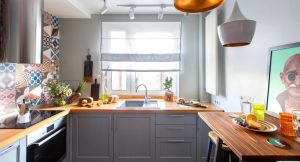 Reka bentuk dapur dengan sink di tingkap