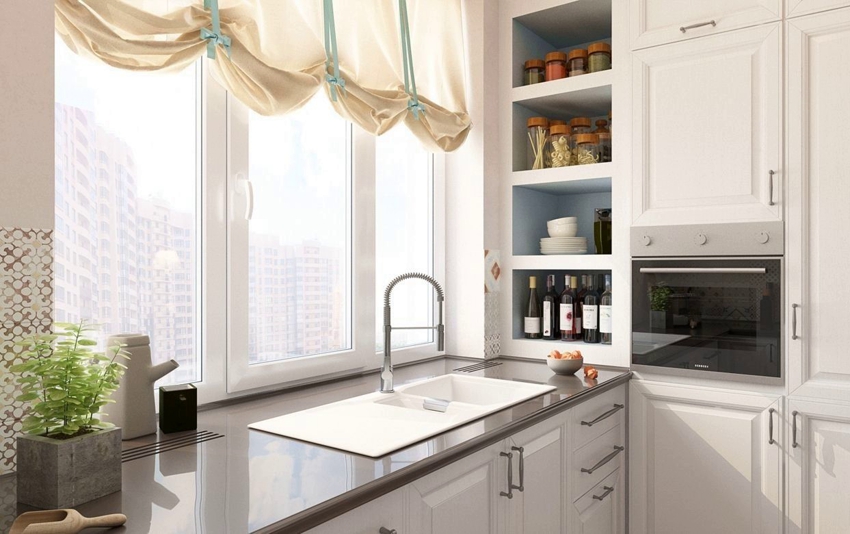 Dapur dengan 2 tingkap atau lebih: cara menghancurkan ruang dengan harmoni