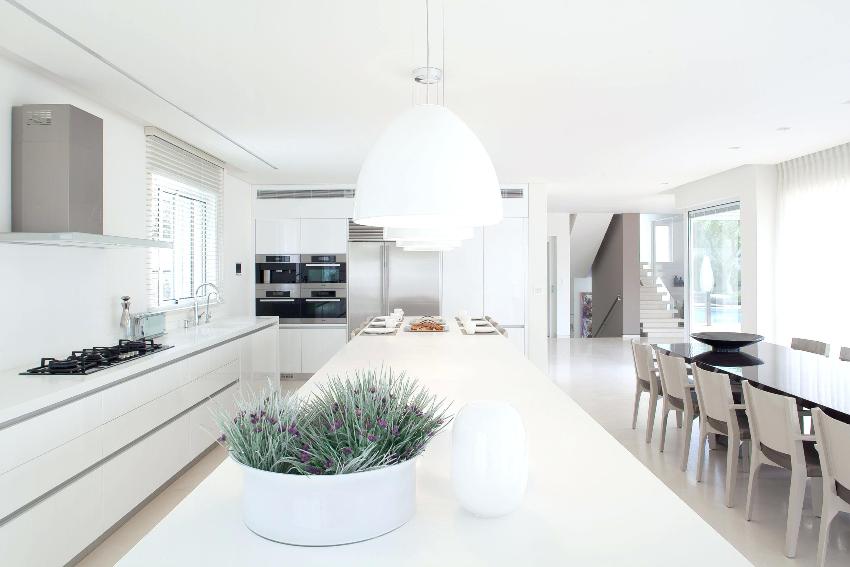 Semasa menghias dapur besar atau kecil dengan gaya minimalis, perlu diingat bahawa bilik tidak boleh kelihatan sombong, kelebihan seni bina tidak dialu-alukan di sini. Matlamat utama yang dicapai oleh minimalisme adalah untuk mewujudkan konsep ruang bersatu menggunakan penyelesaian mudah. Elemen dan bahan binaan semudah mungkin, tetapi pada masa yang sama berfungsi.