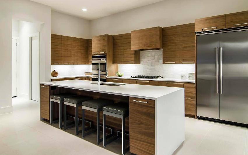 Reka bentuk dapur dalam gaya minimalis dibezakan oleh kesederhanaan, kepraktisan dan fungsi