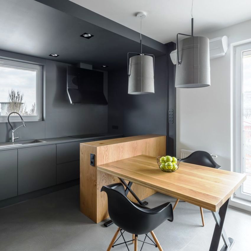 Cara memilih meja untuk dapur dengan gaya minimalis di bahagian dalam apartmen: foto
