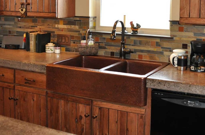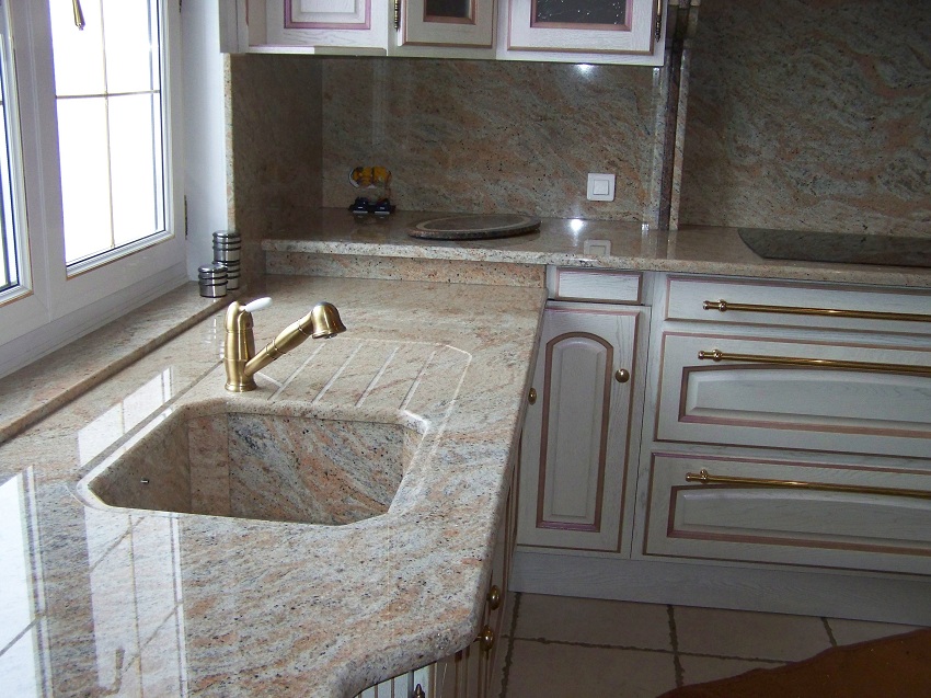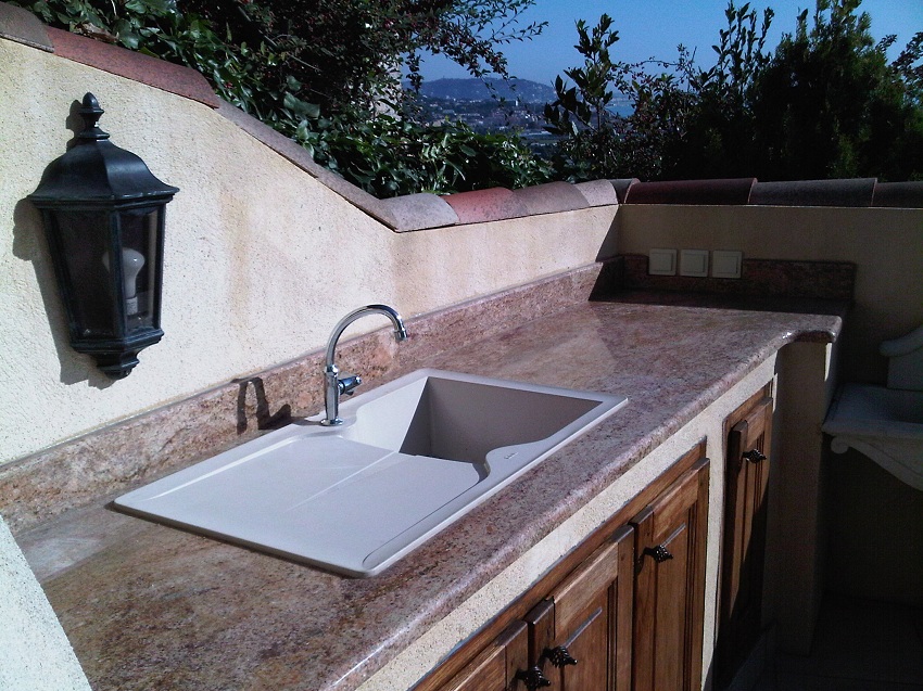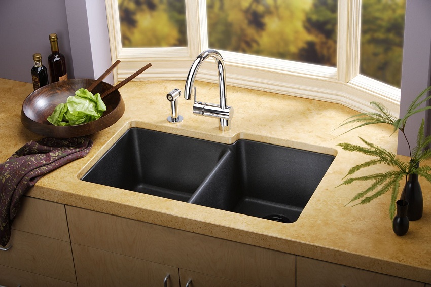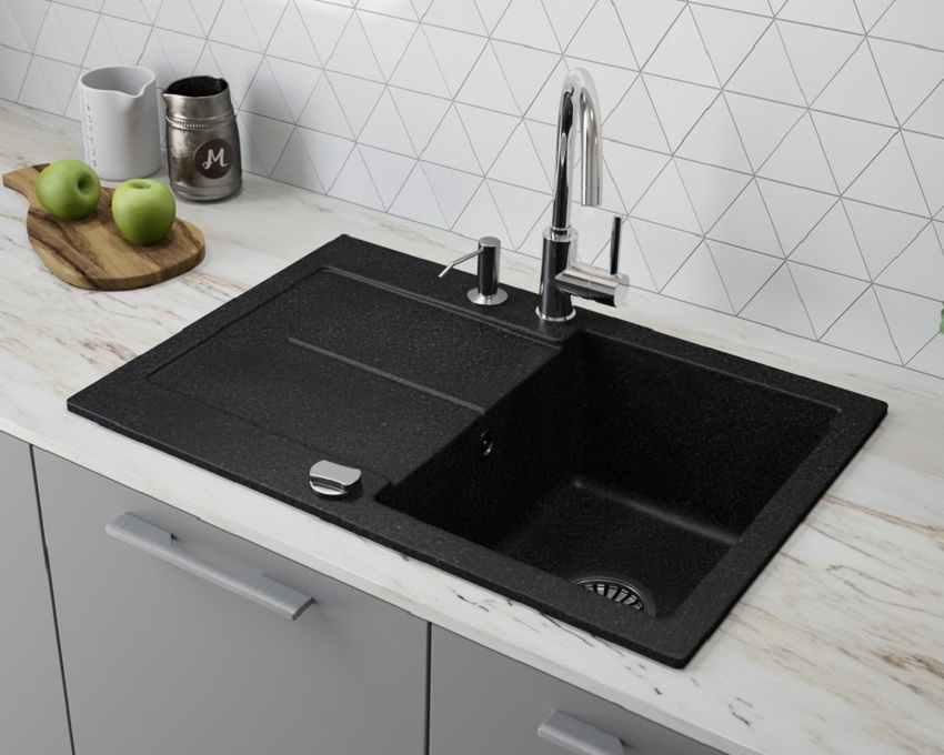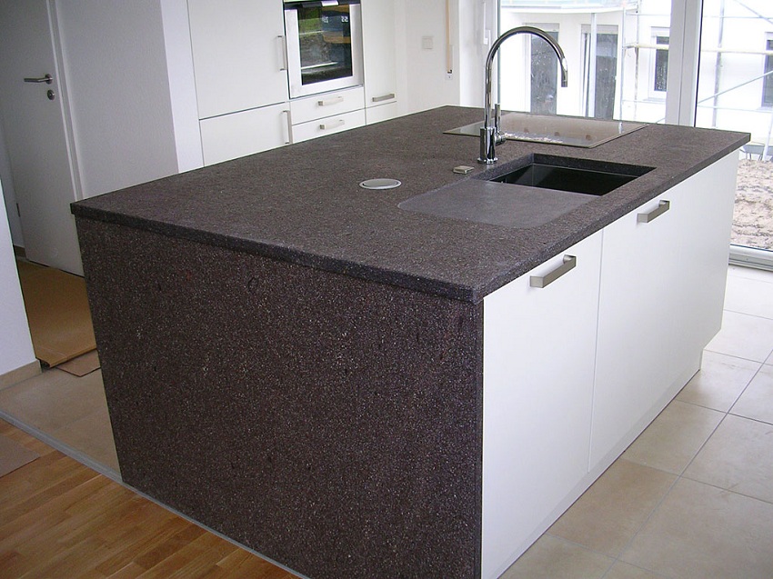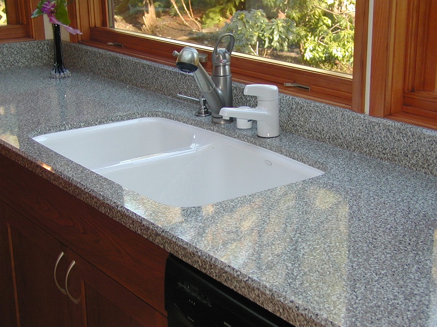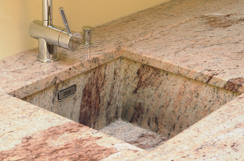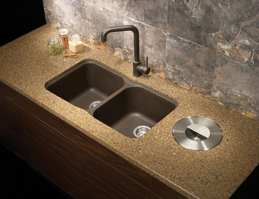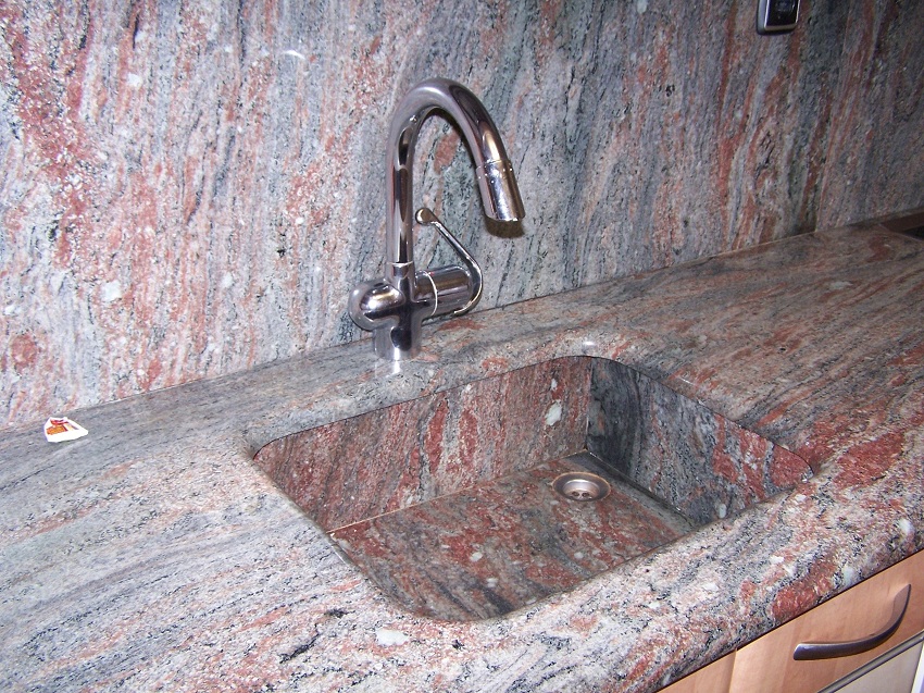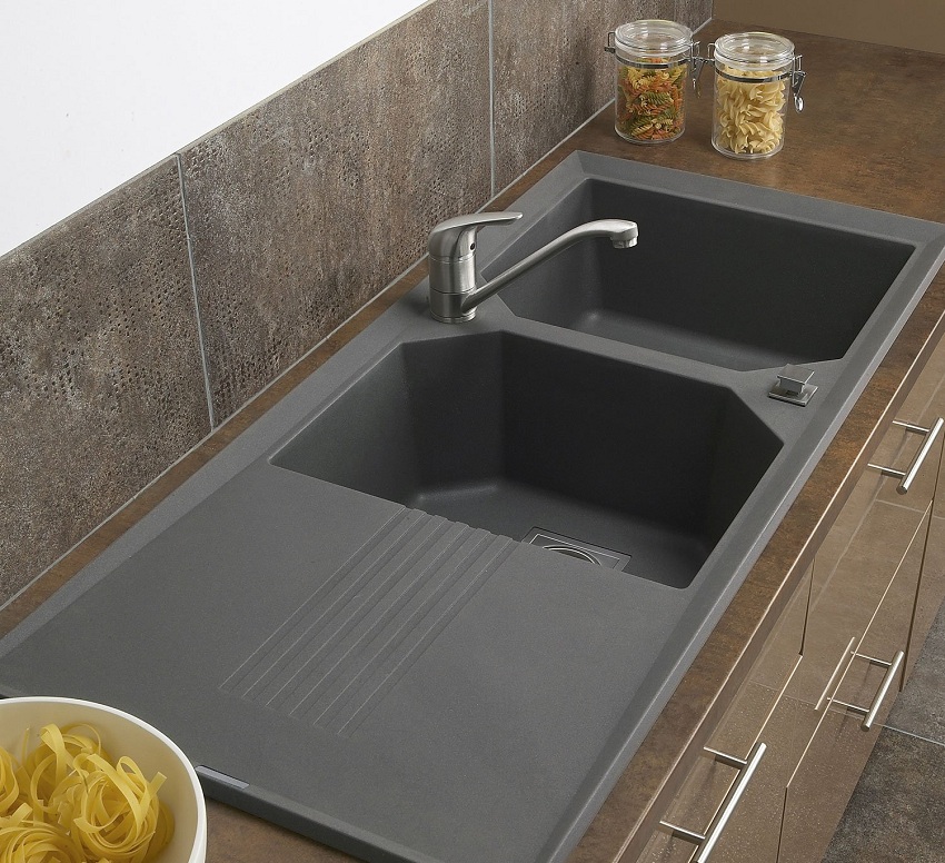 Untuk pembuatan sinki batu untuk dapur, komposit digunakan, termasuk pengisi dan pengikat. Mineral semula jadi memainkan peranan sebagai pengisi, dan zarahnya digabungkan dengan resin. Komposisi komposit biasanya seperti berikut: