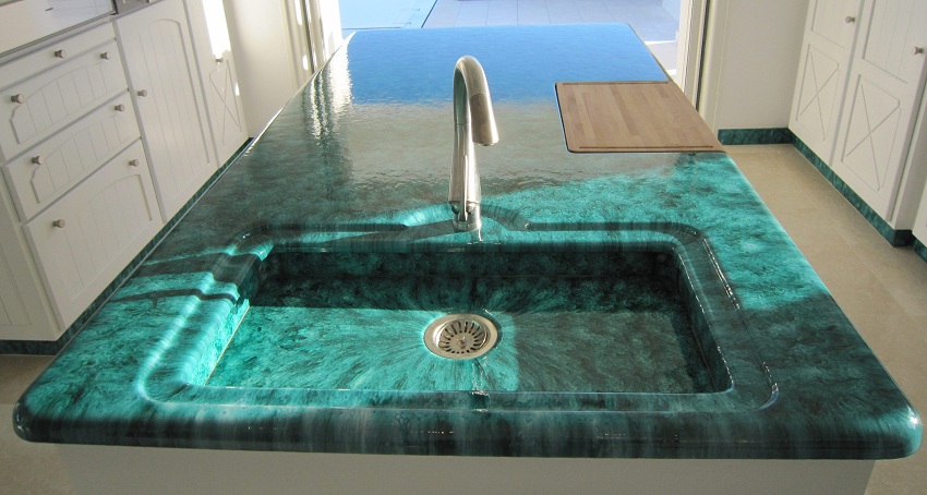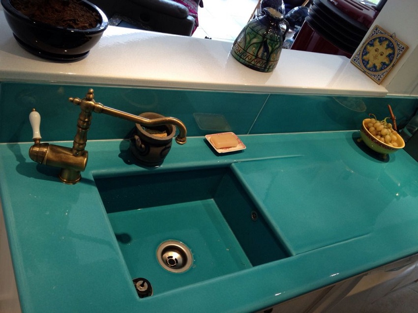 Sebagai lapisan untuk sinki batu moden, gelcoat digunakan - komposisi khas yang meningkatkan ketahanan permukaan. Lapisan pelindung ini menjadikan sinki licin dan bebas dari liang. Di samping itu, berkat lapisan ini, penampilan sinki batu yang indah di dapur terpelihara selama bertahun-tahun penggunaan.