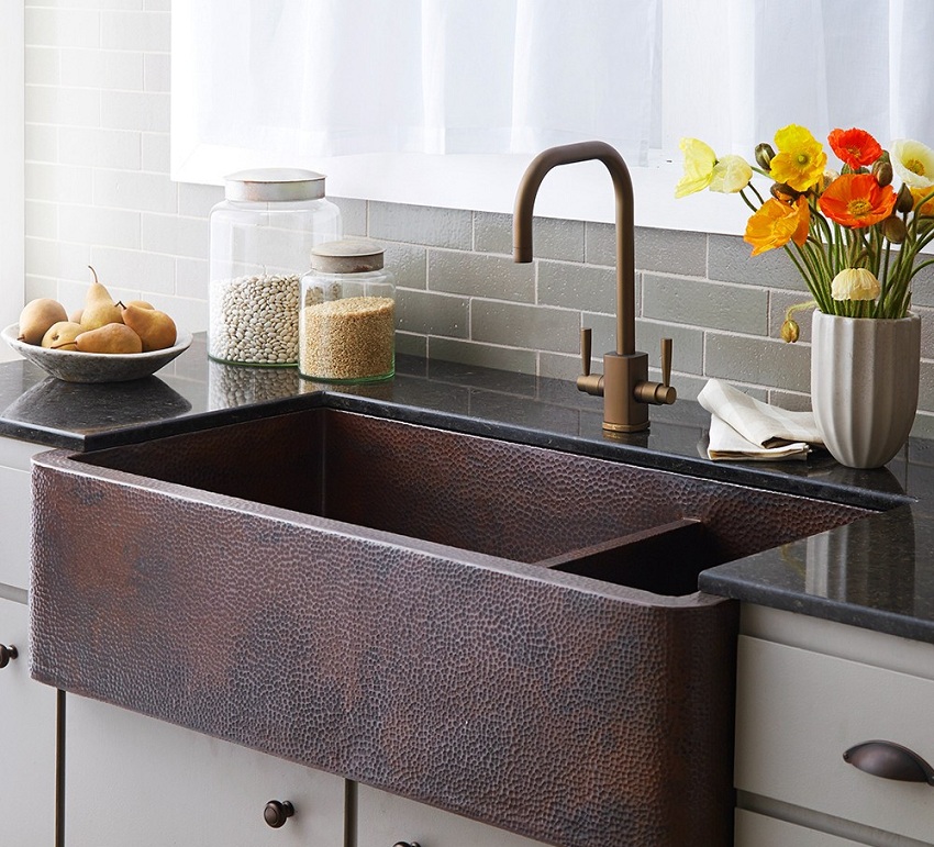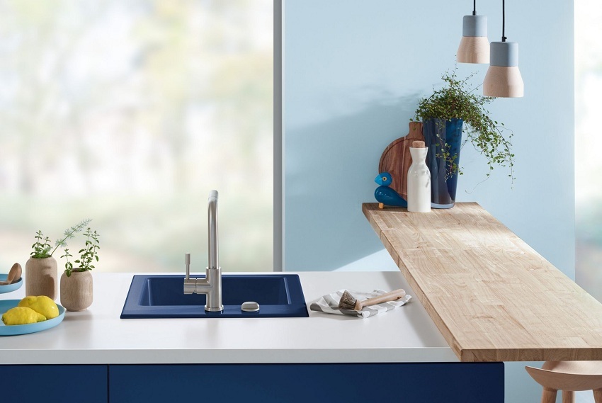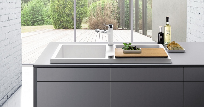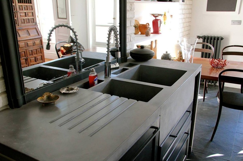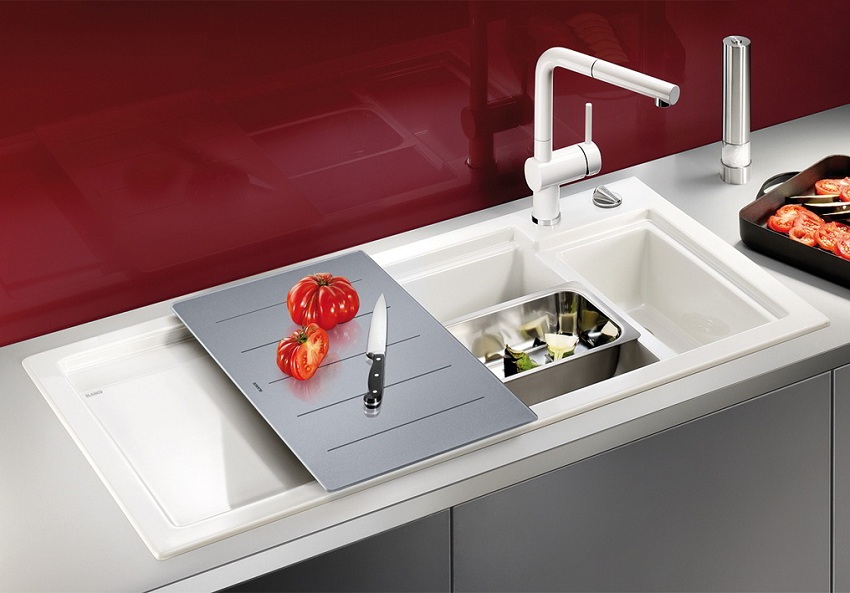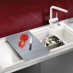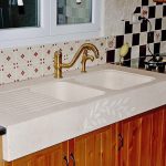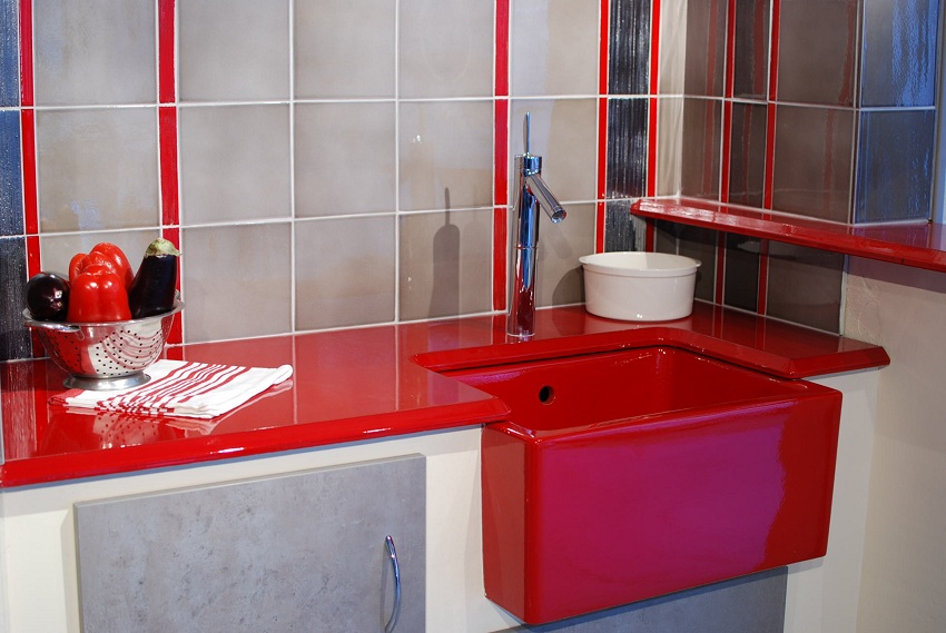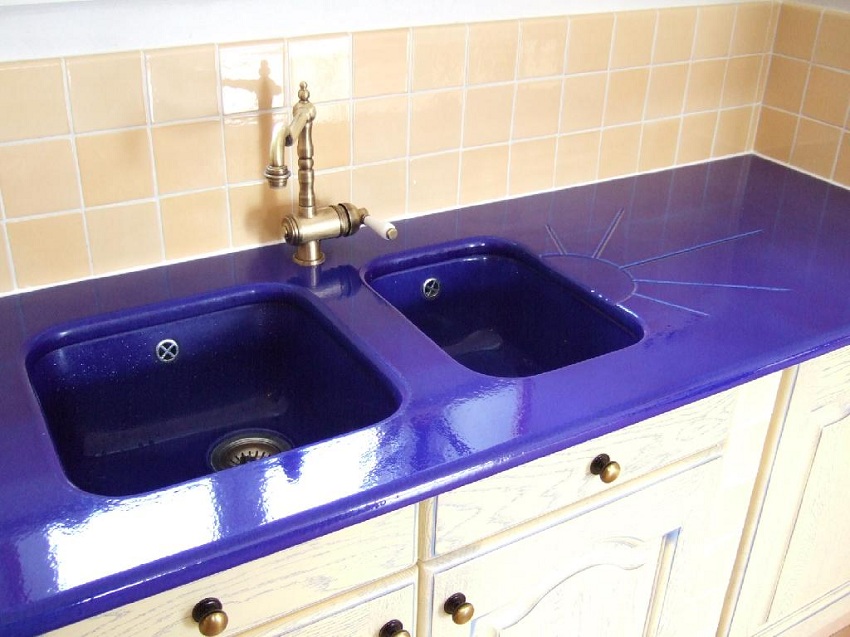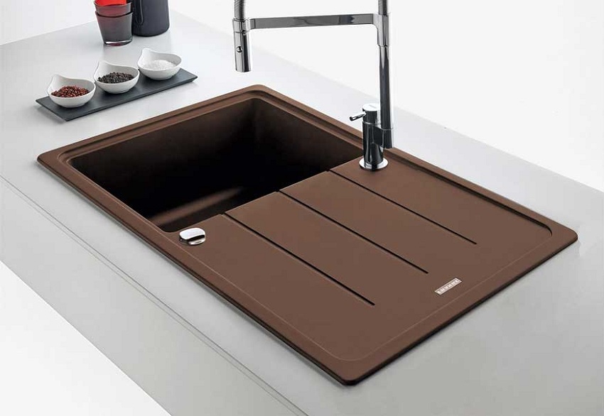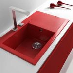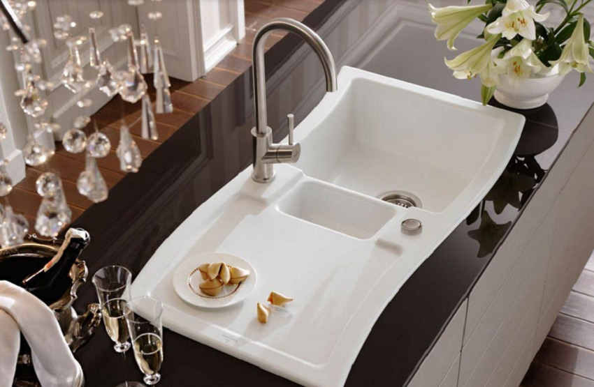 Jenis pemasangan... Sekiranya anda mempunyai perabot modular di dapur, pilih sinki meja yang diperbuat daripada batu buatan. Untuk pemasangan di atas meja kerja yang kukuh, produk yang dipasang dengan flush sesuai. Apabila kos yang tinggi tidak penting bagi anda, lebih baik memilih sink supaya warnanya selaras dengan warna perabot. Maka peralihan permukaan kerja ke sinki sangat sesuai.