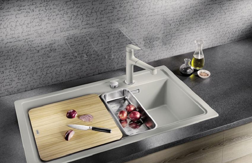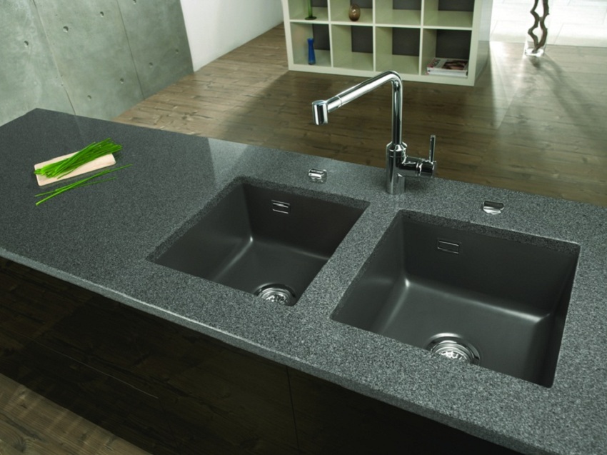 Teknologi pemutus getaran membolehkan anda membuat sink dari batu buatan dalam penyelesaian reka bentuk yang sangat pelbagai. Hari ini, yang paling popular adalah produk dua mangkuk dalam bentuk rama-rama atau cengkerang. Secara umum, tatanama bagi julat sink komposit mengandungi lebih banyak barang daripada barang yang diperbuat daripada keluli tahan karat.