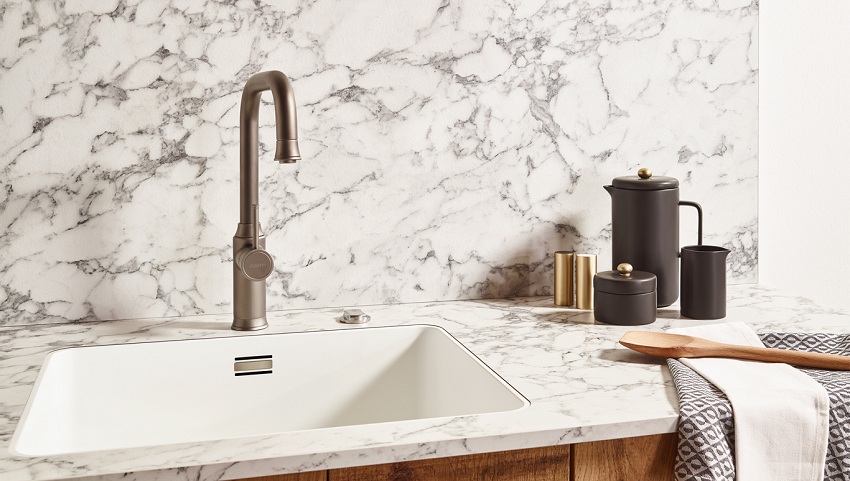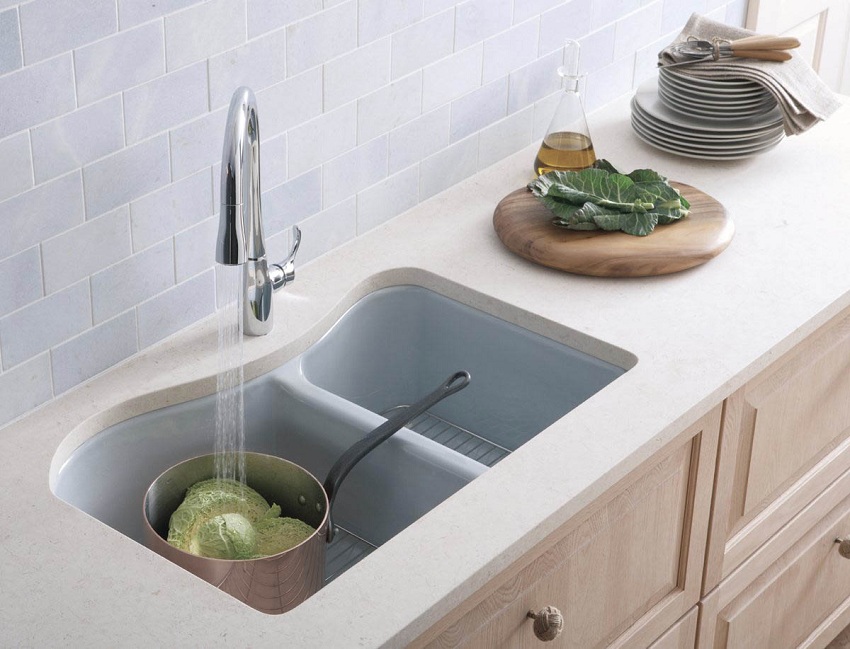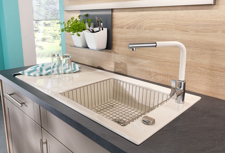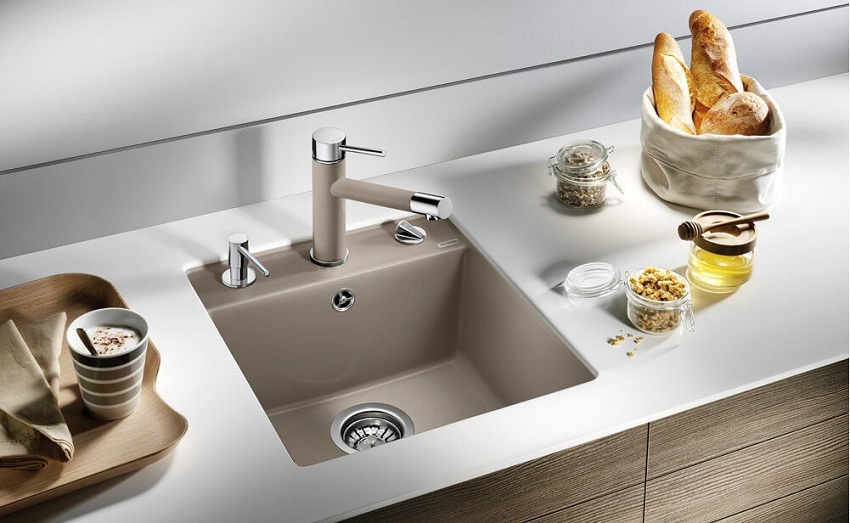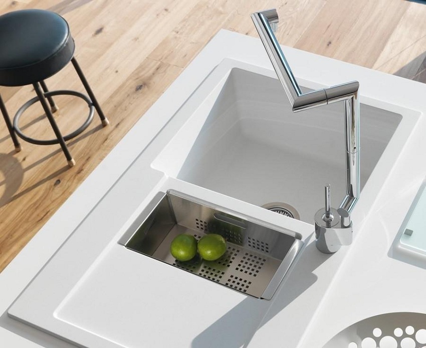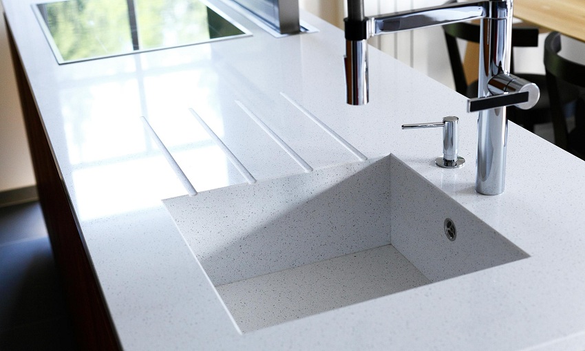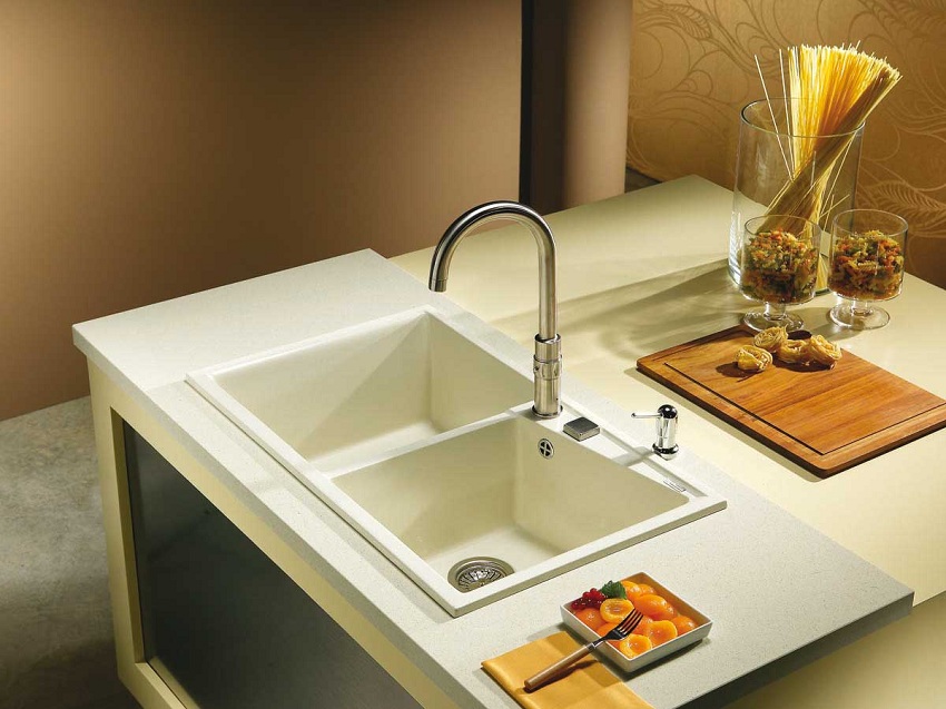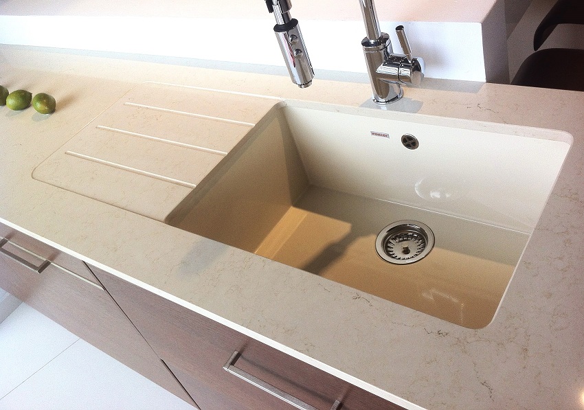 Alasan lain untuk membeli sink dapur yang diperbuat daripada batu buatan adalah kerana bahan ini mempunyai ciri penting seperti pekali pengembangan haba yang rendah. Oleh kerana itu, walaupun suhu serta merta naik atau turun beberapa puluh darjah, permukaan produk tidak akan merosot dan tidak akan retak. Sebagai perbandingan: retakan mungkin muncul di sink dapur seramik semasa pemanasan atau penyejukan tiba-tiba, apabila, misalnya, air mendidih dituangkan ke dalam sink sejuk.