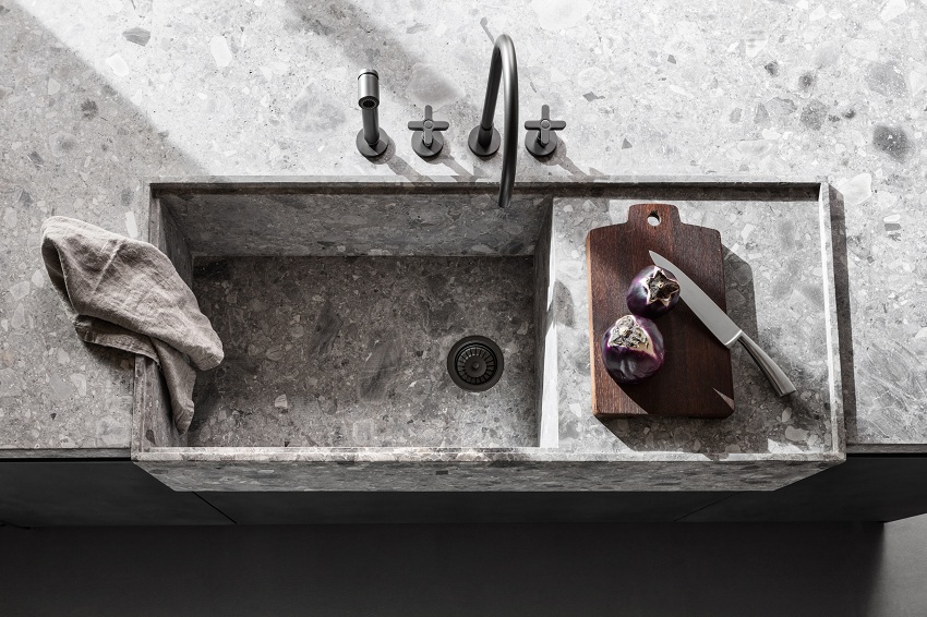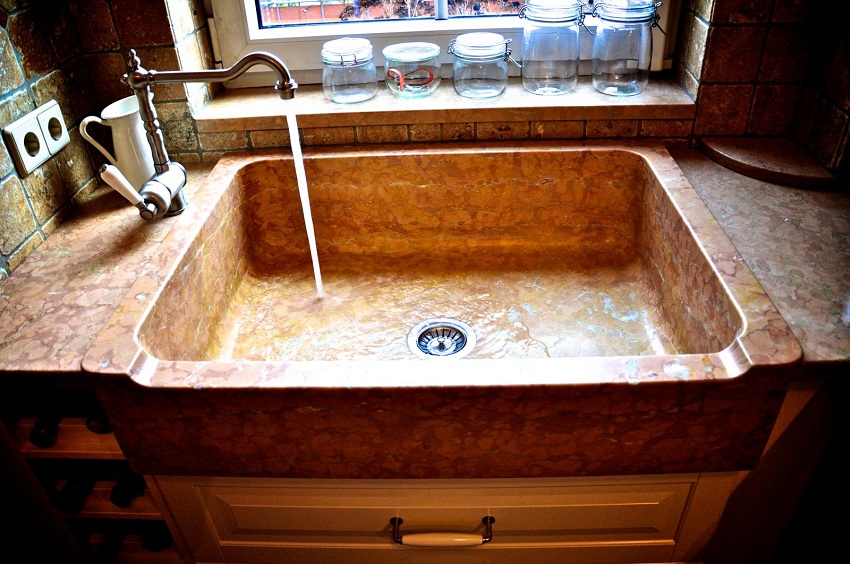 Permukaan sink batu mengekalkan penampilan asalnya walaupun dengan penggunaan yang kerap dan intensif