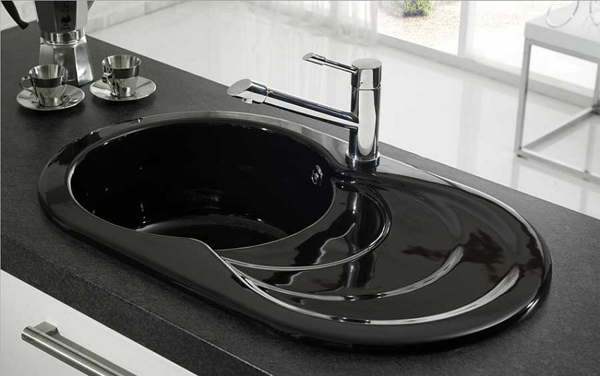 Kepraktisan... Pada produk berkilat hitam, kontur sedimen air, serta noda lain, sangat jelas kelihatan. Oleh itu, sinki mesti dibersihkan hampir selepas setiap penggunaan. Di atas dinyatakan bahawa pilihan terbaik adalah coklat muda, kuning air dan putih.