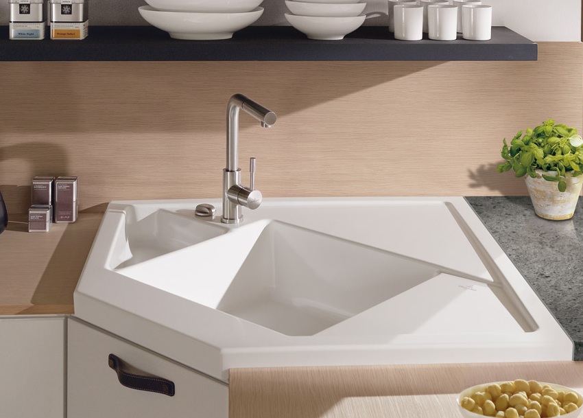 - harga singki untuk dapur yang terletak di sudut bilik biasanya lebih tinggi daripada kos produk depan;
