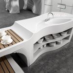 Wastafel cor kelihatan seperti struktur monolitik dan tidak mempunyai jahitan di tempat biasa untuk sinki terbina dalam